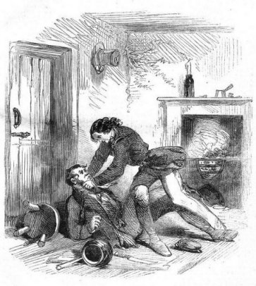 But Crockford, instead of availing himself of the opportunity thus afforded him, stepped in front of the sailor, and barring the passage with his arms, burst into a aloud, foolish laugh.